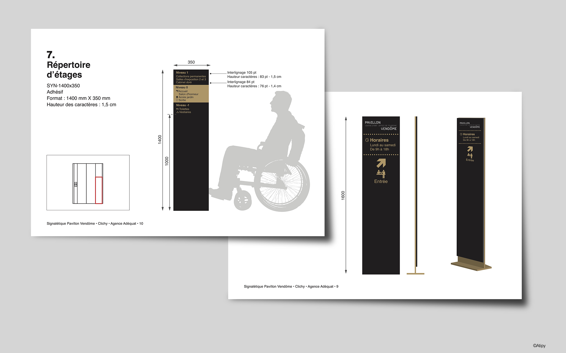 Dans la suite de notre accompagnement, nous avons préconisé des supports de signalétique accessibles pour le Pavillon Vendôme. Bâtiment classé, il abrite un restaurant et des espaces d'expositions.